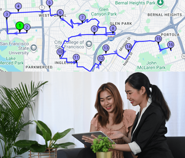 You’ll see a map and an optimized sequence. We will show you if your agents could be fitting one or two extra appointments into their day simply by re-ordering their stops. You can get much more with our Rotue Planner when you’re ready.